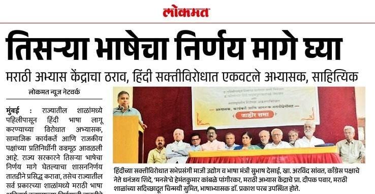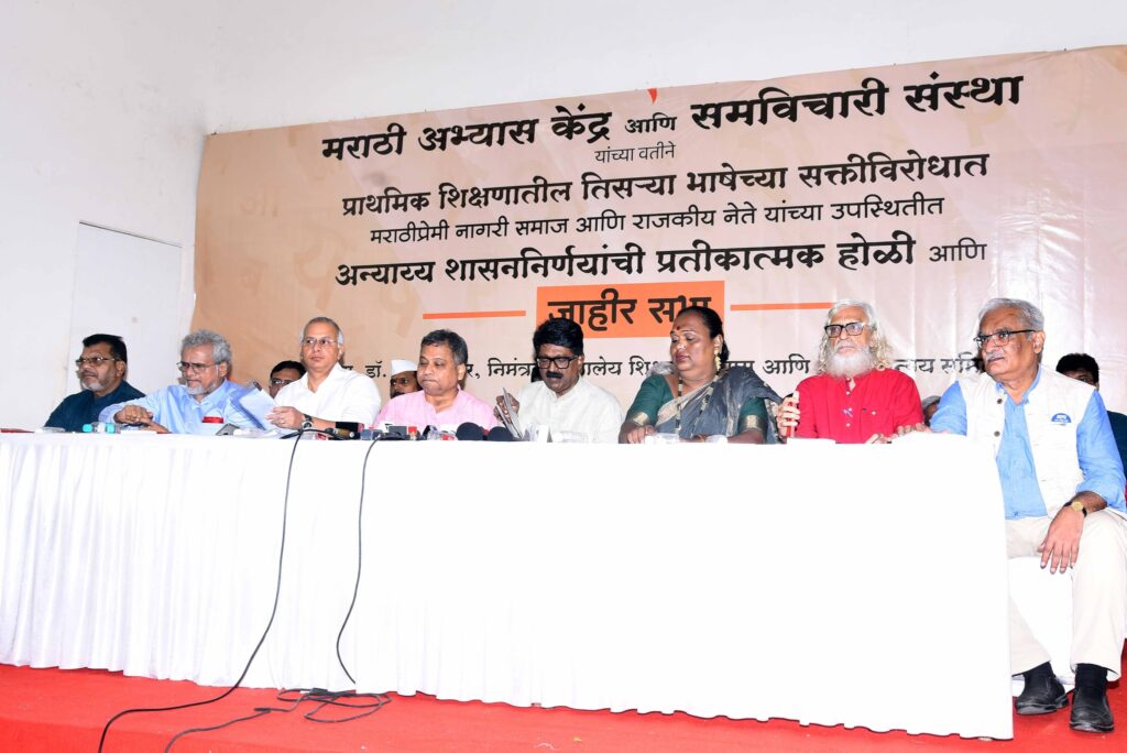महाराष्ट्रावरील हिंदीच्या आक्रमणाविरोधात अभ्यासक कार्यकर्ते आणि जागरूक नागरिकांची जाहीर सभा.
