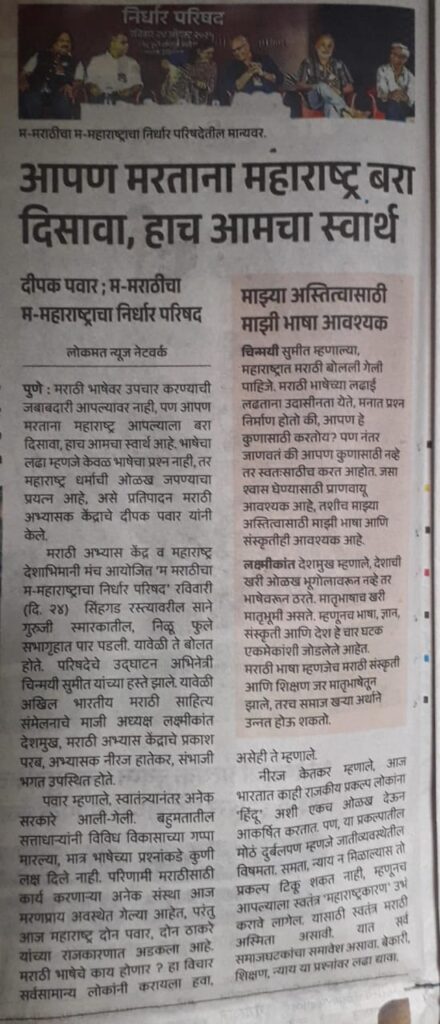 त्यासाठी उपलब्ध राजकीय – प्रशासकीय व्यवस्था यांच्याशी संघर्ष करावा लागेल. नवे विचारव्यूह, नवे चर्चाविश्व घडवावे लागेल. पण ते अपरिहार्य आहे. कारण मराठी भाषा, समाज आणि संस्कृतीच्या अवहेलनेच्या कारणमीमांसेपलीकडे जाऊन संपूर्ण नवी मांडणी करणे हाच आपल्यापुढचा एकमेव मार्ग आहे.
